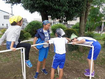 昼休み。子ども達は遊びの天才です。なんでも遊び道具にしてしまいます。どこでも遊び場所にしてしまいます。誰でも遊び仲間にしてしまいます。今日もみんな、それぞれの場所で、楽しく遊んでいます。サッカー、野球、砂遊び、ボール遊び。低学年の子が高学年の子の周りに集まっています。ブランコ。雲梯。ジャングルジム。藤棚。鉄棒では今日も逆上がりの練習をしています。高学年の子がコウモリ飛びをしています。チャイムが鳴ると一斉に昇降口に向かって走りだしました。