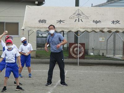 ET(エキスパートティーチャー)は、体力向上を目的とした体育の専門家派遣事業です。本校は和気先生が4、5年生の担当をしてくださいます。今日はソフトボール投げが遠くまで投げられるように肩を中心とした準備運動、ボールの持ち方、投げる角度、体のひねり方、ステップの方法等楽しくご指導いただきました。練習前と後では、かなり効果が出ていたようです。素直で真面目な児童ですね、と褒めていただきました。また、秋に来ていただきます。よろしくおねがいします。