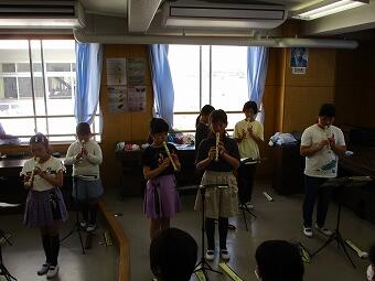 4年生が1年生を招いて音楽会を開きました。合奏をしたり合唱をしたり、どの子も生き生きと音楽を奏でていました。1年生もお姉さん、お兄さんの演奏にしばし聞き入っていました。