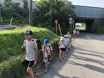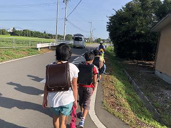 子供たちは毎日、遠い子は40分以上歩いて登下校しています。けれど、歩いて登下校することで、子供たちは毎日とても大切なことを学んでいます。何にも負けない精神力、健康の礎となる体力、さらには危機にとっさに反応する危機管理能力、異学年集団による協力、助け合いの心。もしかしたら「千葉省三」の世界のように、季節ごと移りゆく自然に心を奪われているかもしれません。今日もみんな、途中で給水しながら元気に歩いて登校しました。また、いつも子供たちの登下校を、保護者の方や地域の方が見守ってくださっています。ありがとうございます。