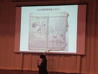 楡木小学校の名前や場所の変遷、当時の児童の服装、使われていた教科書、設置者などのお話を、貴重な資料もお持ちいただいて、分かりやすく説明していただきました。楡木小学校のことを知る良い機会になりました。お忙しい中、ありがとうございました。