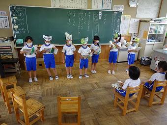 1年生が国語で「やくそく」単元の音読発表会を行いました。どの子も一生懸命練習した成果をしっかりと発揮していました。