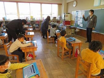2年生が算数で長さの学習をしました。オクリンクというタブレットソフトを使って、課題に対して自分なりの考えを書き込んでいました。ICT支援員さんにも入ってもらい、算数の学習とともにICTに慣れる学習も同時に行いました。
