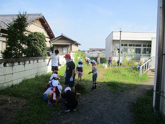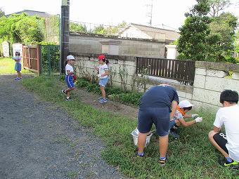 朝の活動で全校除草を行いました。なかよし班ごとエリアをきめて取り組みました。どの子も、一生懸命活動していました。