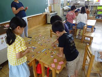1年生がかるた取りを行いました。どの子も一生懸命、楽しそうに取り組んでいました。