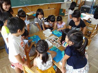 2年生が図工で「ひみつのグアナゴ」という単元を学習しました。「グアナゴ」という名前から想像する生き物を、自由な発想で粘土で作る創作活動です。どの子も発想の翼を広げながら、自分の「グアナゴ」を作りました。作り終わったらみんなで鑑賞会。「これはおもしろいね」「細かいところまでよくできてるね」など、よいところを言い合いました。そして最後に先生が、本物の「グアナゴ」の写真をみんなに見せました。南米にいる実際の動物です。「全然違う」「ラクダみたい」子ども達は大興奮でした。