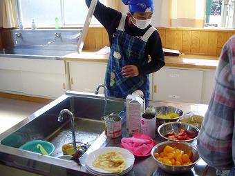 5年生がお楽しみ会として調理実習を行いました。班で協力し合いながら、和気あいあいと料理し、会食しました。
