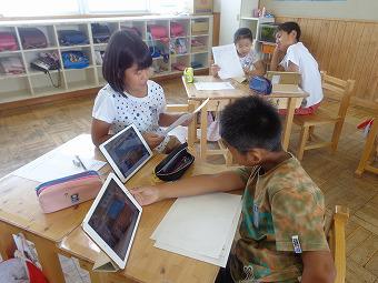 2時間目、5年生は算数でした。iPadと、これまでの板書写真を使いながら、単元の振り返りをする学習です。相手に伝える内容を記述した後、ペアになって振り返りを伝え合いました。どの子もiPadの板書写真に線を入れたり、囲んだり、ズームしたりしながら、学んだことを相手にわかりやすく伝えていました。「説明がわかりやすかったです。」「これまで学んだことを、もう一度、自分の言葉で伝えたので、学習内容がさらに頭に入りました。」といった感想が聞かれました。