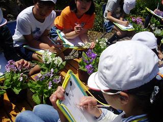 5年生が総合の時間に、地域の方のお宅を訪問し、さくら草スケッチを行ってきました。毎年、5年生がお邪魔して自分の花を決め、スケッチします。6年生になった時にその花をプレゼントとしていただきます。子ども達は、自分の花を決めると、真剣にスケッチを始めました。途中、栽培者の方に「花は、話しかけると答えが返ってくるよ。」というお話をいただくと、どの子も花に語りかけ、聞こえてきた花の言葉をスケッチの余白に書き綴っていました。来年、可憐さを増したお花を、どの子もいただけることでしょう。