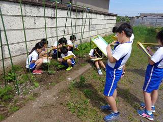 4年生が理科の学習でひょうたんの観察をしました。1年間を通じて、成長を観察します。どの子も一生懸命にスケッチをしていました。