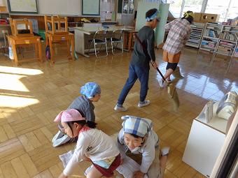 11月を迎えるにあたり、清掃場所が変わりました。新しい清掃場所に集まったなかよし班はさっそく班長さんを中心に清掃分担について話し合います。先生にアドバイスをいただきながら、和やかに、高学年は下学年にゆずりながら、清掃分担が決まります。自分の役割に従って新しい場所の清掃に取りかかります。先生はその様子をみながら、ぞうきんのかけ方、ほうきの掃き方などを指導していきます。どの子も意欲的に真面目に清掃に励んでいます。最後の振り返りでは、「最初はとまどったけど、やり方を教わってきれいになったのでよかったです。」「1年生として初めての場所でしたが、また明日もがんばりたいです。」といった感想を述べていました。毎日の清掃も、子ども達にとってとても大切な教育活動です。