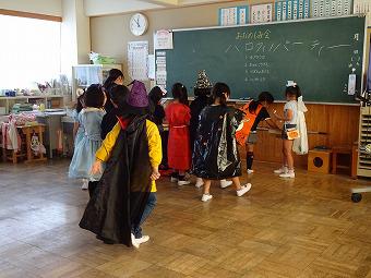 2年生が学級活動の時間に、みんなが仲良く楽しく生活するためにどうしたらよいかを話し合い、「ハロウィンパーティー」を企画しました。今日まで飾り付けやプレゼントをつくったり、衣装を考えたり。どの子も今日を楽しみにしていました。司会が進行しながら、みんなで協力しながら、素敵なひとときを過ごしました。仲の良い2年生が、これでさらに仲良くなることでしょう。