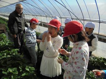 3年生が社会科で地域のいちご農家を見学に行きました。本校地域の特産物であるいちご栽培を調べることで「働く人々のくふうや願い」を感じることをめあてとしています。地域のいちご農家さんが全面的に協力してくださり、子ども達がこれまで学校で調べて疑問に思ったことや、いちごを育てるにあたっての工夫や願いを、わかりやすくお話いただきました。なっているいちごを食べさせていただいたり、帰りにはお土産までいただいたりして、子ども達は満面の笑みを浮かべていました。ご協力いただきました中田様、大変ありがとうございました。