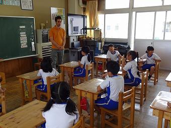 2年生が外国語活動を行いました。ALTの先生と一緒にあいさつを練習したり、アルファベトの発音を練習したりしました。どの子もとても楽しそうに英語に親しんでいました。