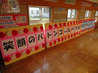 今年度の運動会スローガンは、「笑顔のバトン、ゴールへつなげ、スマイルリレー!」です。