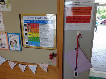 熱中症が心配される季節になりました。本校では保健室前と体育館に熱中症センサー、危機管理マニュアルを常備し、常に指数を確認しながら教育活動を進めています。