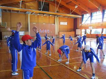 4年生と6年生が合同体育を行いました。一緒に体育を行うことで、体力の向上を図るとともに、4年生は畏敬の念を、6年生は思いやりの心を養います。前半は手つなぎ鬼で、思い切り走り回り、後半は、ドッジボール大会に向けての練習を行いました。