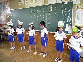 1年生が国語で「やくそく」単元の音読発表会を行いました。どの子も一生懸命練習した成果をしっかりと発揮していました。