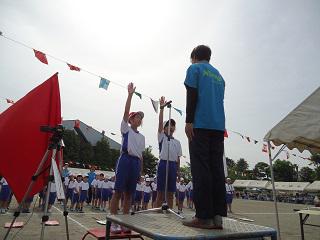 「最後まで あきらめないで 走り抜け!」のスローガンのもと、ご来賓の皆様、地域の皆様、保護者の方々の温かなご声援をいただきながら、平成30年度の運動会を盛大に開催することができました。この日のために一生懸命練習に取り組んできた子ども達。最後まで力を抜くことなく、精一杯の演技を披露できたことに大きな達成感と満足感を感じたことでしょう。この日、子ども達は大きく成長しました。運動会で学んだことは、これから学校生活のさまざまな場面で花開いていくことと思います。