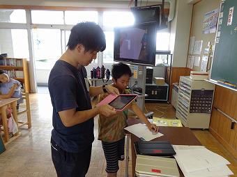 2時間目、5年生は算数でした。iPadと、これまでの板書写真を使いながら、単元の振り返りをする学習です。相手に伝える内容を記述した後、ペアになって振り返りを伝え合いました。どの子もiPadの板書写真に線を入れたり、囲んだり、ズームしたりしながら、学んだことを相手にわかりやすく伝えていました。「説明がわかりやすかったです。」「これまで学んだことを、もう一度、自分の言葉で伝えたので、学習内容がさらに頭に入りました。」といった感想が聞かれました。