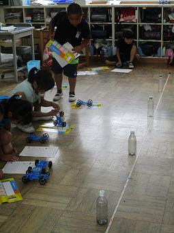 3年生は今、理科の時間で『ゴムや風のはたらき』について学習しています。おもちゃづくりを通してエネルギーの基礎を学ぶ単元です。今回はゴムを回す回数によって、動力がどのように変わるかを調べました。みんな自分の自動車を作り動かしながら、夢中になって学習に取り組んでいました。