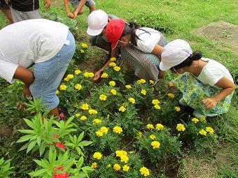 3年生は理科「植物の育ちとつくり」の学習で、中庭花壇にホウセンカの種を蒔き、一年間を通じて観察しています。今日は伸びてきた雑草をみんなできれいにしながら観察しました。種を蒔いて今日まで77日間。小さな種がこんなに大きくなり、きれいな花を咲かせたことに、どの子も改めて、その素晴らしさに感じ入っている様子でした。