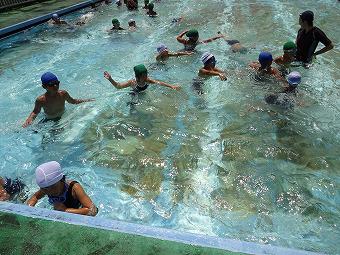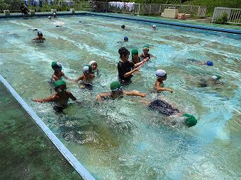 3,4時間目、1年生、2年生、3年生が合同で水泳学習を行いました。どの子も待ちに待った学習です。流れるプールをみんなで作ったり、自分の泳力を確かめたり、自由時間に思い切り楽しんだり、と、どの子も楽しそうに水と戯れながら、体力向上に励んでいました。