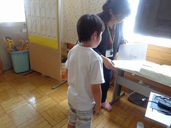 2年生がMIMの学習をしました。MIMとは動作化をしながら特殊音節(はねる音、伸ばす音など)をマスターして、すらすら文章を読めるようになることをねらいとした学習方法です。2年生も、先生の指示で動作を交えて、MIM学習をしました。その後、それぞれ練習テストを行いました。どの子も真剣にテストに取り組んでいました。テストが終わると、全員でてるてる坊主をつるして雨が降らないことを願いました。今日はこの後、水泳学習を行うからです。願いがかなって、水泳学習は予定通り行われました。