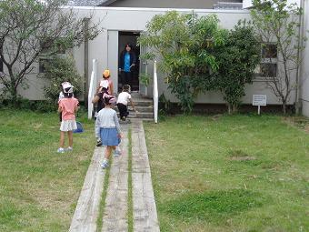 1年生が生活科の時間に、未来の1年生のためにアサガオの種を一生懸命、採集していました。その後、みんなで中庭に出て、秋の虫探しに熱中していました。