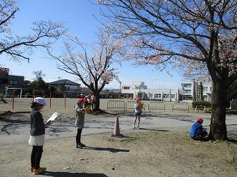 4年生が理科で、「生きものの様子を調べよう」の学習を行いました。校庭の草木を1年間観察する学習です。4年生は桜の木の1年間を調べることにして、第一回目の観察をしました。これから桜の木がどんなふうに変わっていくのか、どの子も興味津々で観察していました。