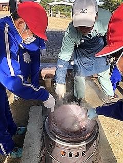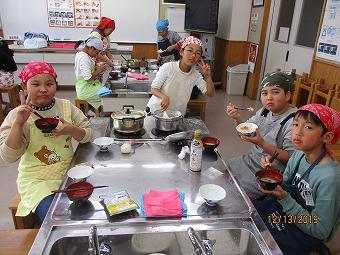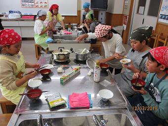 5年生が家庭科の学習で味噌汁づくりと炊飯の調理実習を行いました。どの班も、協力しながら調理を行い、楽しく会食しました。
