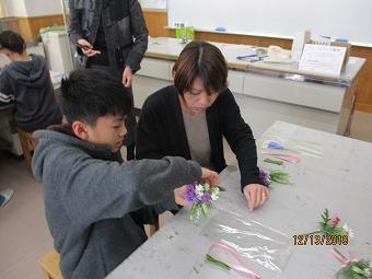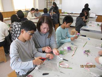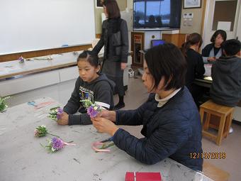 6年生が学年PTAを催しました。講師「ひこばえ」さんに来校いただき、卒業式に向けてのコサージュ作りと親子給食試食会でした。親と子が楽しく会話しながら、一緒にコサージュを作り、一緒に給食を食べました。親子触れあいの貴重な時間となりました。企画運営いただいた学年委員の皆様、「ひこばえ」の皆様、6年保護者の皆様、大変ありがとうございました。