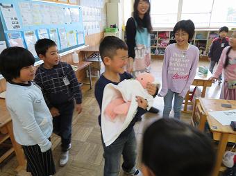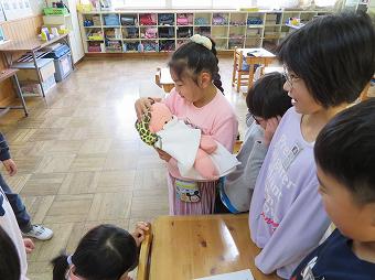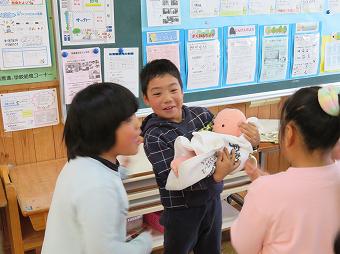 2年生が学級活動の時間に「おへそのひみつ」の学習を行いました。おへその役割を学んだり、赤ちゃんがお母さんのおなかの中にいたときの様子をパネルや実際の胎児の画像を見たり、産声を聞きながら赤ちゃんの人形を抱いたりする体験をしました。最後に絵本「いのちのまつり」の読み聞かせを聞きました。この授業を通して、子供たちは「命の尊さ」「自他の命の大切さ」「おうちの人やたくさんの人に守られている感謝の気持ち」について学びました。