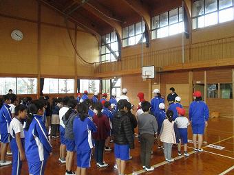 業間の時間に全校大縄練習を行いました。3学期に開催される大縄記録会に向けての第1回目の練習です。なかよし班ごとに大縄を跳ぶことで協力や助け合いの気持ちを育てるとともに、体力の向上をねらいとします。どの班も自分たちのめあてにしたがって、協力し、助け合いながら、一生懸命練習していました。最後に6年生が今日の記録と、これからがんばりたいことを発表しました。笑顔とふれあいと真剣さに満ちたひとときでした。