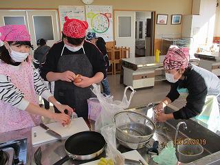 6年生が家庭科の学習で調理実習を行いました。班で協力しながら、じゃがいものハンバーグを作りました。どの子も、楽しそうに、意欲を持って学習していました。