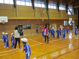 1年生が体育で長縄を行いました。最初はタイミングが取れず、なかなか入れない児童もいましたが、先生や友達の励ましで、最後は皆、リズムよく跳ぶことができてきました。どの子も楽しそうに活動していました。