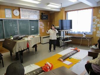 5年生が音楽で、和楽器の学習をしました。琴や尺八、篠笛に触れ、実際に演奏することで、和楽器、雅楽の素晴らしさを体験しました。