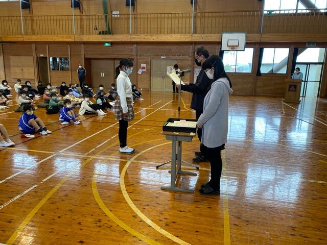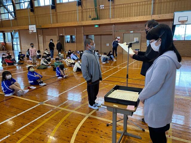 給食の時間に放送による表彰式を行いました。