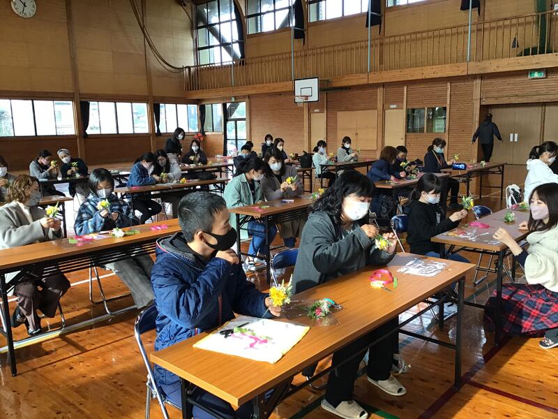 6年生が卒業に向けて親子コサージュつくりに挑みました。緊張感が漂う中、みなさん真剣に頑張っていました。思い出に残るコサージュができたのではないかと思います。