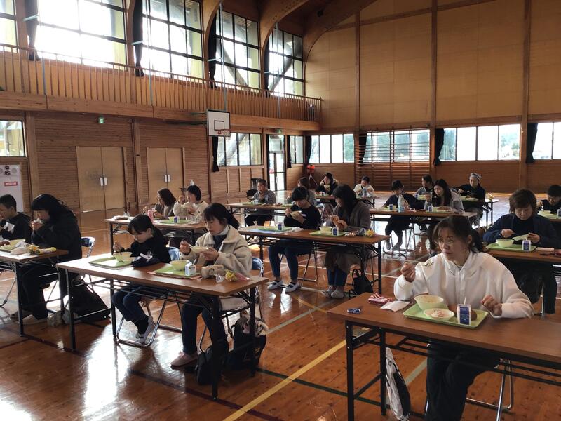 その後、子どもたちから感謝の気持ちを伝える会、子どもたちの配膳による給食試食を行いました。