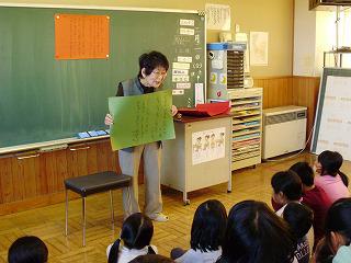 3学期も、1・2年生が朝の活動の時間にKLVさんによる読み聞かせをして頂きました。日本や世界の昔話、絵本や紙芝居と、幅広く読み聞かせしてくださいました。作者や絵本画家についても紹介してくださり、絵本の楽しみ方が広がりました。また、ご自身の体験談をお話ししてくださった時は、子どもたちは、いつもに増して集中して聞いていました。