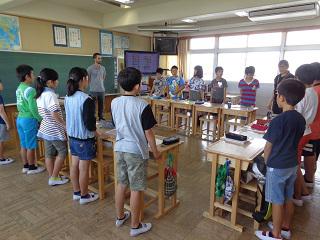 6年生が外国語科の学習をしました。ALTと例文を練習してから、それぞれ自分の自己紹介文を英語で作りました。その後、ペアで練習し、みんなの前で発表しました。どの子も前向きに一生懸命取り組んでいました。