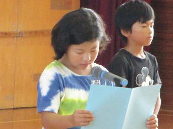2学期が始まりました。全員が元気に登校し、始業式が行われました。最初に代表児童の発表がありました。海に行ったこと、野球をがんばったこと、自主学習や家事のお手伝いをがんばったこと、など、夏休みの想い出や、漢字や理科を頑張りたい、忘れ物をなくしたい、など、2学期がんばりたいことを、どの児童もしっかりとした態度で発表しました。その後、校長より、2学期も「チーム楡小、ハッピーリレー!をさらにつないでいきましょう」、との話がありました。また学習指導主任や児童指導主任からも、「学習のめあてをしっかり立てましょう」、「相手の目を見て、大きな声で、あいさつしよう!」といった、2学期がんばることの話がありました。どの子も、きちんした姿勢で話を聞き、これから始まる2学期に向けて、気持ちを新たにしていました。