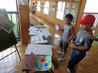 休み時間。学校に子ども達の歓声が戻ってきました。皆、思い思いの遊びに熱中しています。野球、ドッチボール、おいかけっこ、ブランコ、枝でオブジェを作っている子、葉っぱを集めている子、トンボを捕まえている子。チャイムが鳴ると、一斉に昇降口に向かって走りだします。「時間を守る」ためです。昇降口脇の夏休み作品コーナーには、続々と、一生懸命がんばって作った作品が集まってきています。