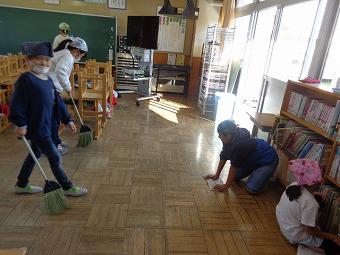 11月を迎えるにあたり、清掃場所が変わりました。新しい清掃場所に集まったなかよし班はさっそく班長さんを中心に清掃分担について話し合います。先生にアドバイスをいただきながら、和やかに、高学年は下学年にゆずりながら、清掃分担が決まります。自分の役割に従って新しい場所の清掃に取りかかります。先生はその様子をみながら、ぞうきんのかけ方、ほうきの掃き方などを指導していきます。どの子も意欲的に真面目に清掃に励んでいます。最後の振り返りでは、「最初はとまどったけど、やり方を教わってきれいになったのでよかったです。」「1年生として初めての場所でしたが、また明日もがんばりたいです。」といった感想を述べていました。毎日の清掃も、子ども達にとってとても大切な教育活動です。