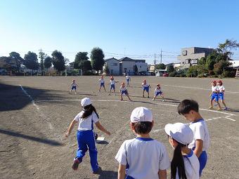 1時間目、3年生が校庭でキックベースをしていました。どの子も目を輝かせ、朝の陽光に負けないぐらいの大きな声を出しながら、とても楽しそうに、ボールを蹴り、追っていました。