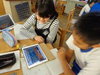 算数の授業で割合の学習を行いました。2つの事柄を比べるためにはどうしたらよいかを子ども達が考えました。いろいろな意見がでるうちに、比の概念が形作られていきました。ふりかえりはタブレットを活用して、自分なりのまとめを行いました。