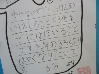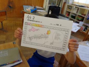 毎日、業間持久走練習が終わると、子ども達は、日本一周ができる頑張りカードに周回した数に応じて色を塗ります。子ども達はそれを励みに頑張っています。2枚目にいった子も出てきました。金曜日の本番に向けて、どの子も意欲的です。