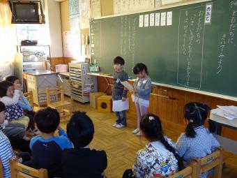 1年生が国語の時間に、「ともだちにきいてみよう」の学習をしました。友達に今、一番楽しいと思うことをお互いインタビューして、みんなの前で発表しました。みんな、上手に発表していました。どの子も、これまで知らなかった友達の違う一面を知ることができたようでした。