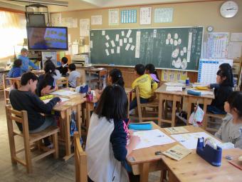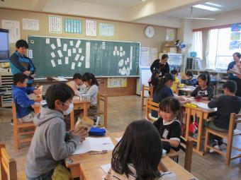 3年生の国語で、校内研究授業を行いました。単元は「言葉を分類する」です。最初、楡小キャラクター『チュール』を使って『分類』の概念を理解した後、いくつかの言葉を自分なりの分類方法で分類し、発表しました。いろいろな考え方に触れながら、子ども達は楽しく「言葉を分類」する方法を学んでいました。放課後、職員みんなで授業研究会を行いました。
